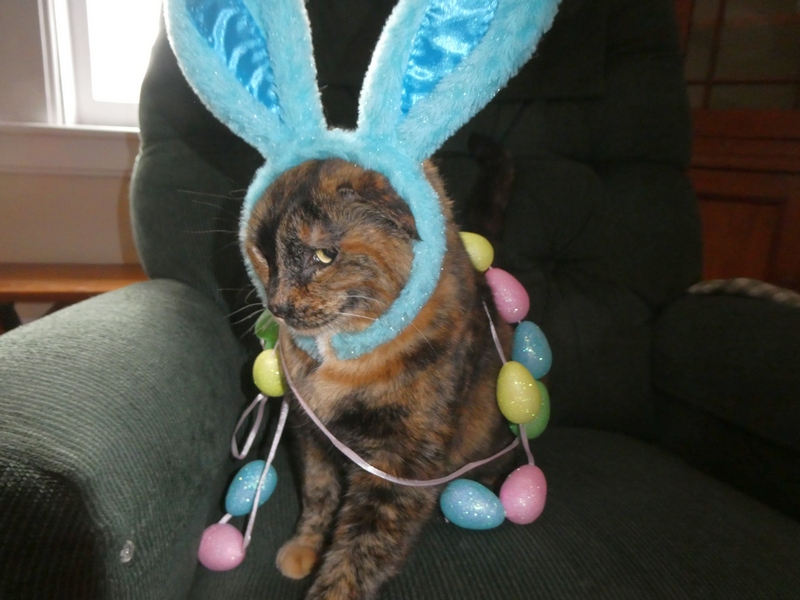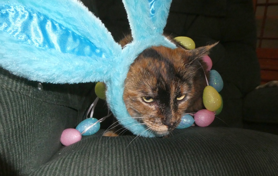 - For Easter ( or Passover), I plan to focus on the EAT in Easter and take a bite otta my human for putting me in this stupid outfit!!