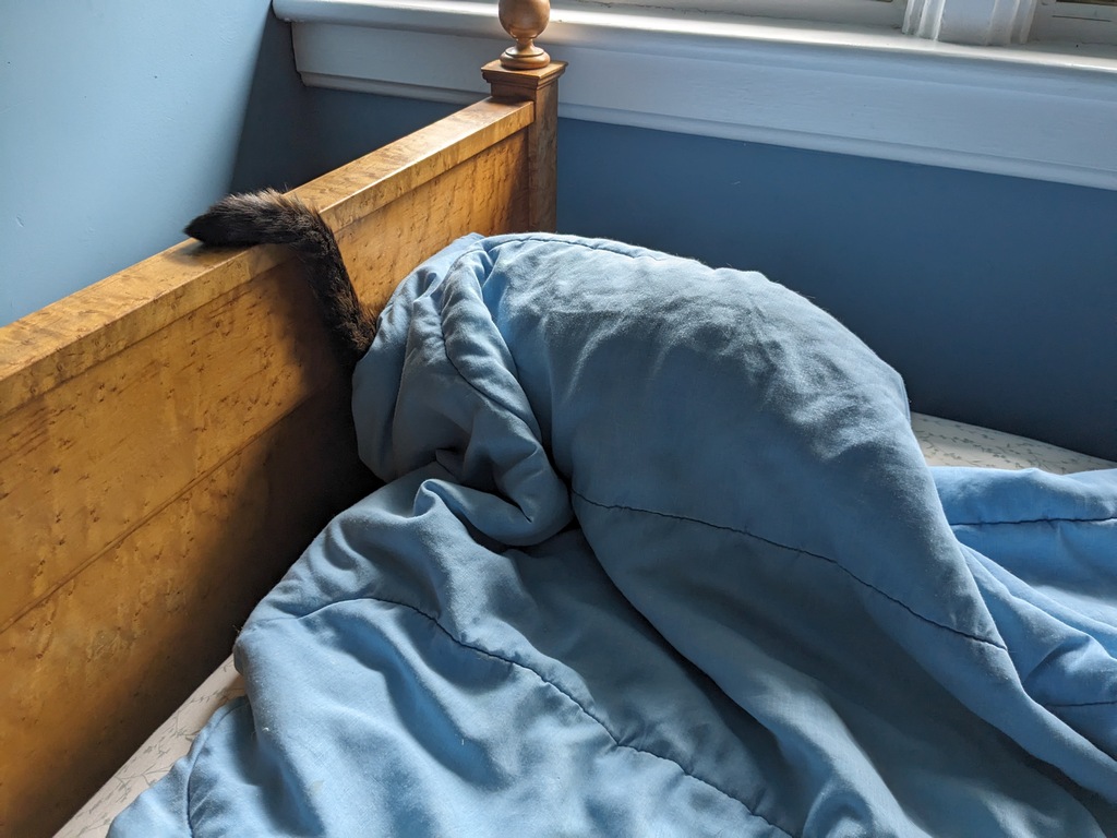 Kitties always think if they can’t see, they can’t be seen. The tale of the tell-tell tail. Send her to our house, Kizmet will teach Amarula how to really burrow. XOCK, angels Lily Olivia, Mauricio, Misty May, Giulietta & Fiona, Astrid, Lisbeth, Calista Jo, Cooper Murphy, Sawyer, Kizmet, Audrey & Raleigh
