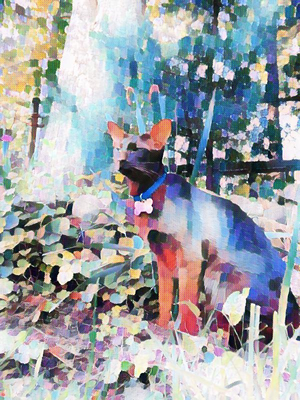 Zulu outside using the Delauney effect; Amarula using nouveau; Frodo using Beauty