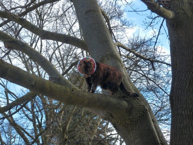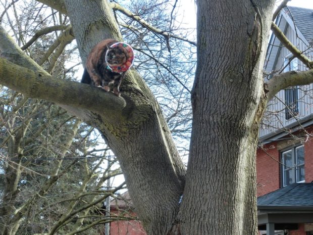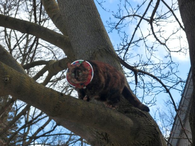 “I’m not coming down until you promise to remove this collar.” Have a blessed day.