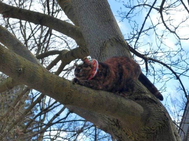 We know you knew your way down, Amarula. You just wanted your human to feel needed, so you pretended you needed help. If anything was wrong, it was that stupid collar and all those bells throwing your balance off, right?!? Like it’s YOUR fault birds are stupid! ~Bear Cat