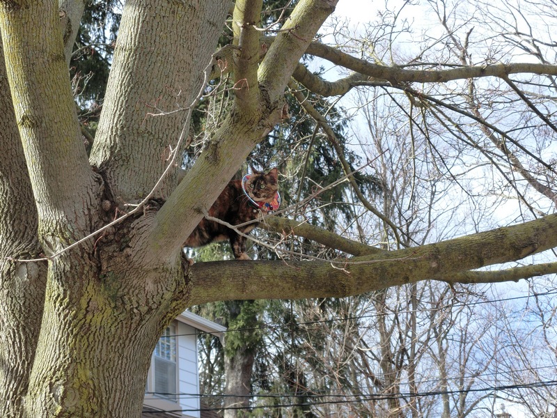 Oh I hope you get down. A lot of the cats here go up trees and they learn to go down backwards slowly. Hope you make it down all right. Have a great day.
