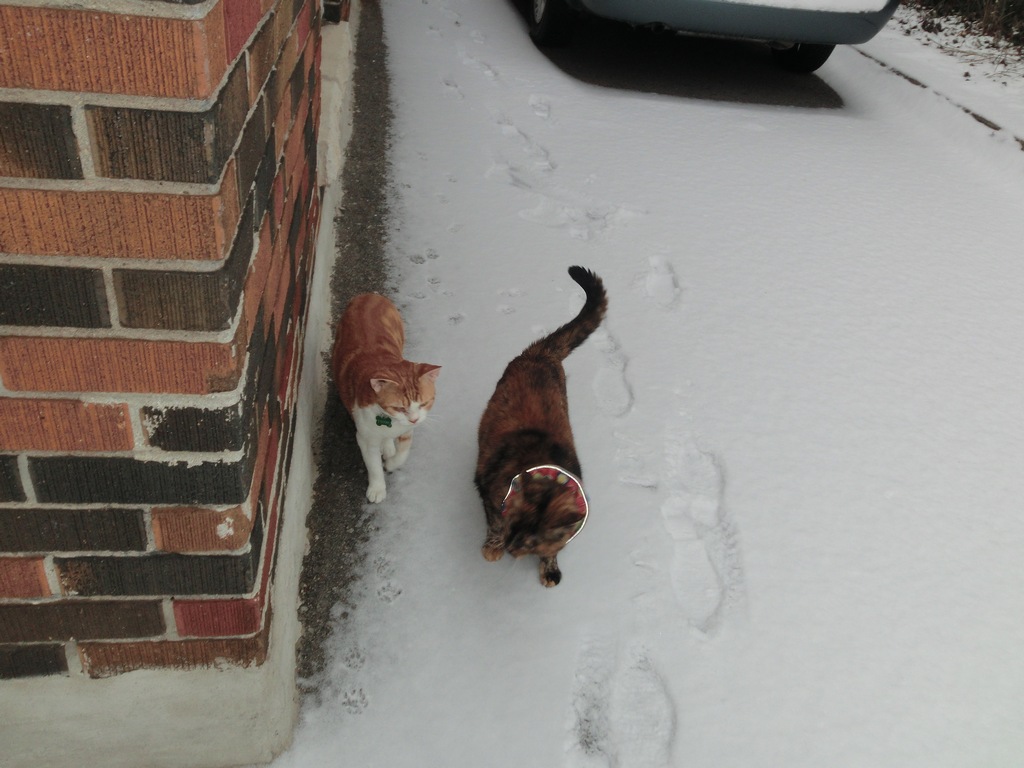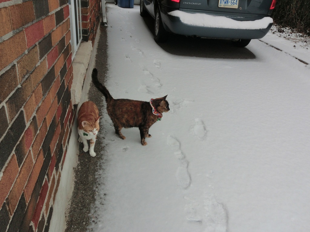 Oh Amarula ! If a sudden blizzard appears you can huddle together for warmth. The cold and snow is hard on all kitties.