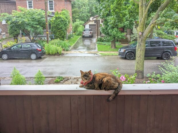 Amarula loves to sit on the porch and survey her domain. Sadly she doesn’t like doing so on rainy days!