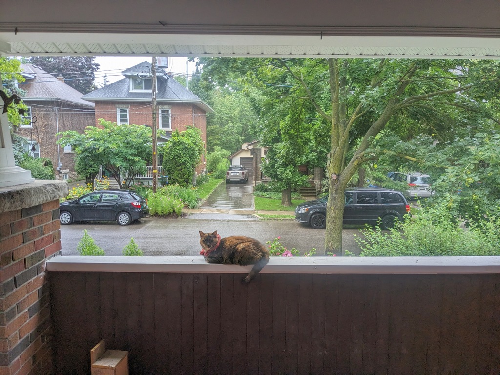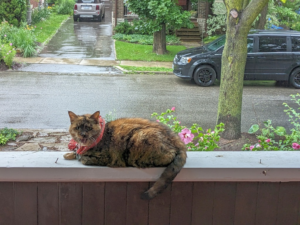Amarula loves to sit on the porch and survey her domain. Sadly she doesn’t like doing so on rainy days!