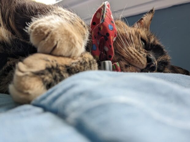 AMARULA: You better not be writing about how cute I am! You know how I hate that. I am not lying beside you, I just had a fainting spell and it’s taking me awhile to recover. The fact that it happened beside you is nothing more than a coincidence.