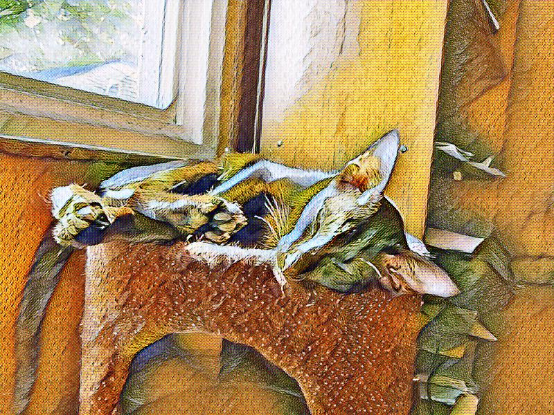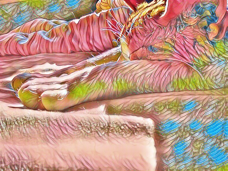 I love seeing kitties curl up on cat trees with heads and legs dangling off. I like all of these art works. But I particularly like the closeup if Amarula.