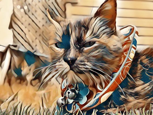 This is from the photo of Amarula from Thankful Thursday’s blog pondering how she would love to get rid of Frodo and Zulu (though I agree with what many of you said — she would miss them– what else would she do with her time if she didn’t have them to plot against?) I used Fairy from LunaPic. I think it really makes her look ferocious and lovely at the same time! (PS: Bear she agrees with you–she has way too many bells, which is a testatment to her hunting abilitiy!)