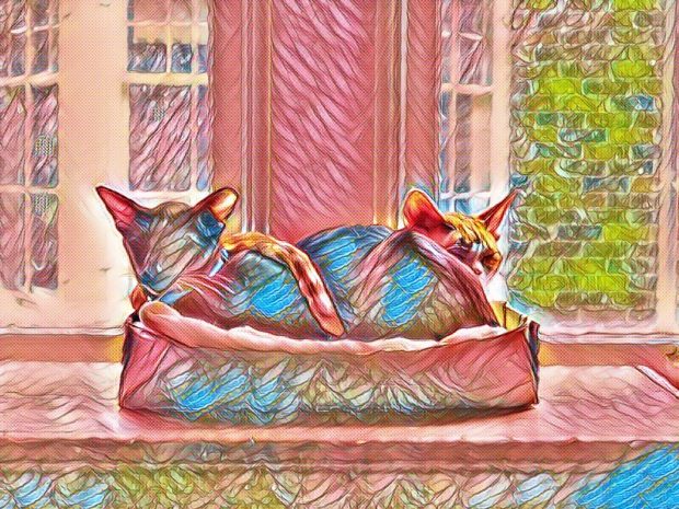The above photo for Caturday Art is taken using Beauty filter from LunaPic. It’s the photo from Wednesday showing Zulu and Frodo reunited now that Busy has left