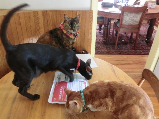 FRODO: A package for us!? This is so exciting. First we win the St. Patty’s Catnip Mat from 15andMeowing and now this!? What a week!