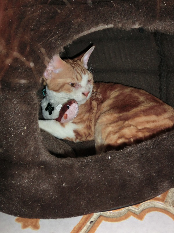 AMARULA: Frodo quickly made off with one of the toys and promptly fell asleep with it in his paws!