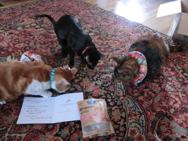 Many Many thanks from all of us! This was the best Late/Very Early Christmas Gift Ever! Thanks Pawesome Cats! You live up to your name! And a HUGE thank you to Paula at Sweet Purrfections for organizing Secret Paws!