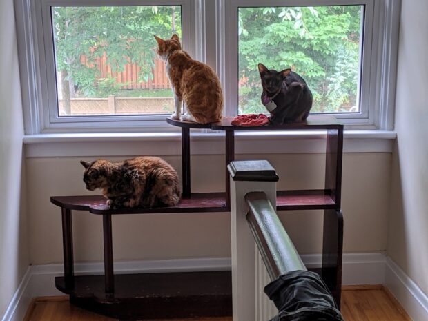 1. You’re a good kitty mom for letting them have such a wonderful place to view the world, stare at you or ignore everything. A huge Awww.
