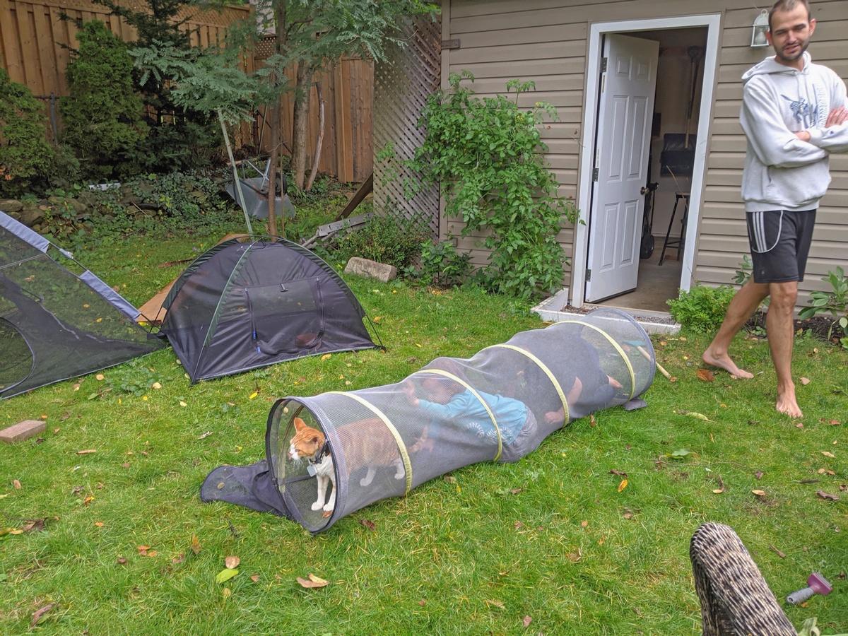 Follow The Leader September 14, 2020 by Amarula FRODO: Follow me boys! My neighbor came over with his two boys and Frodo decided to teach them how to play Follow The Leader in the cat tunnel!