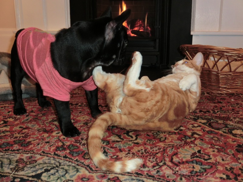 Uh oh. Is there trouble in Frodo/Busy-land? Some kitty looks slightly annoyed with the company … or is it that you just love to play, Frodo? I’m thinking Busy’s best bet is staying out of the reach of Amarula’s claws … in this case, prevention is worth more than the cure.