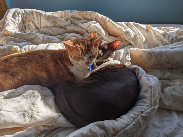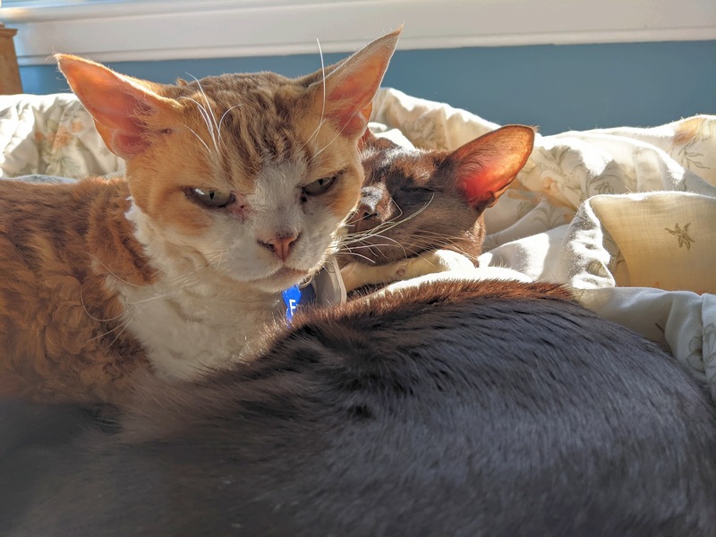 FRODO: What do you mean it’s time to get up! (Frodo’s expression says it all! He is not and has never been a morning kitty!)