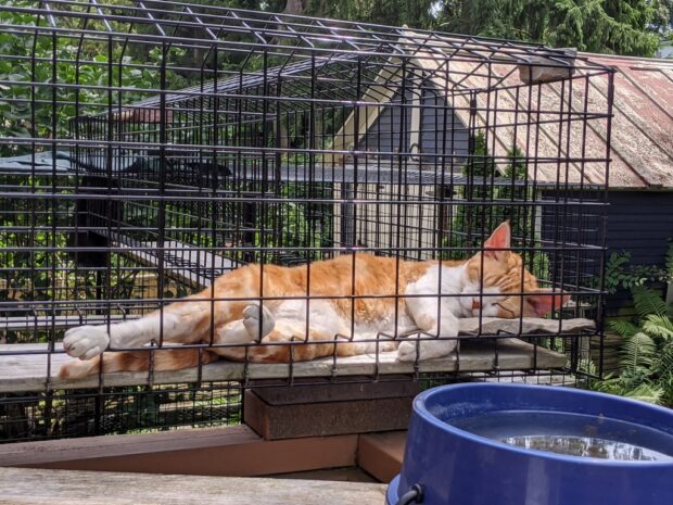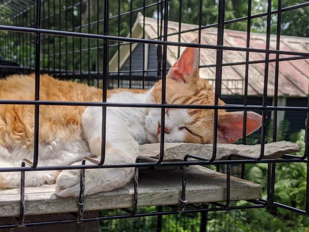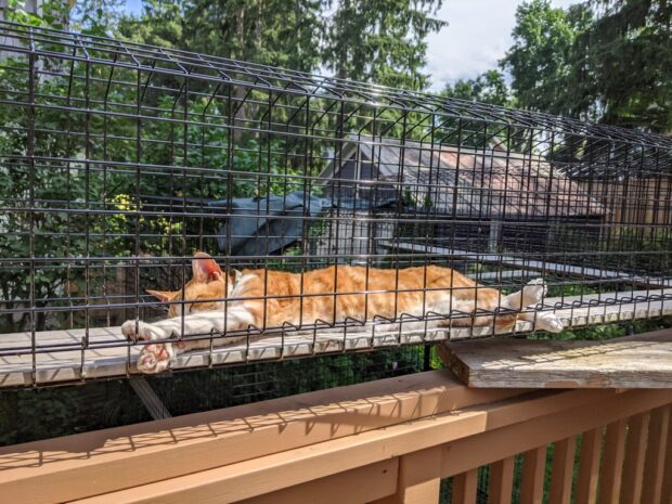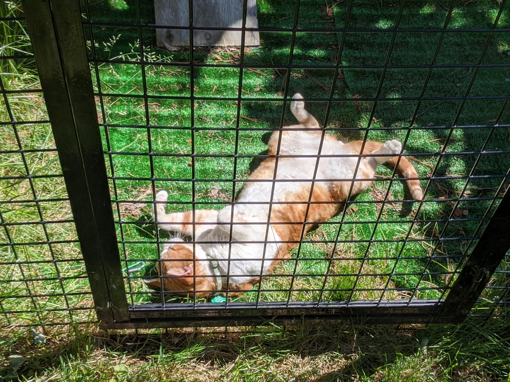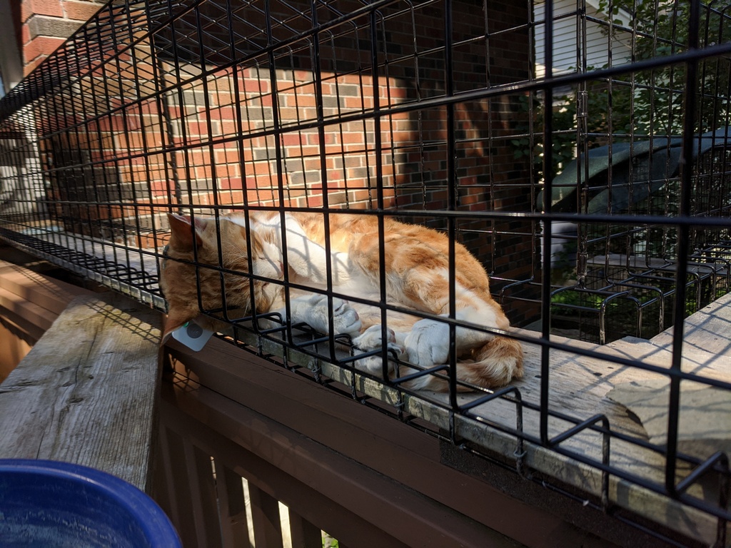Frodo loves his cat containment unit/catio. Check out these photos of him taking it easy…