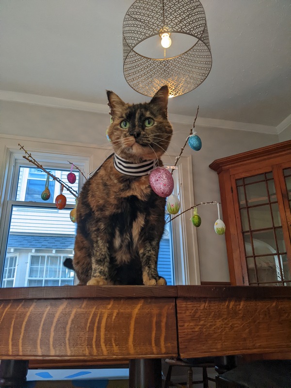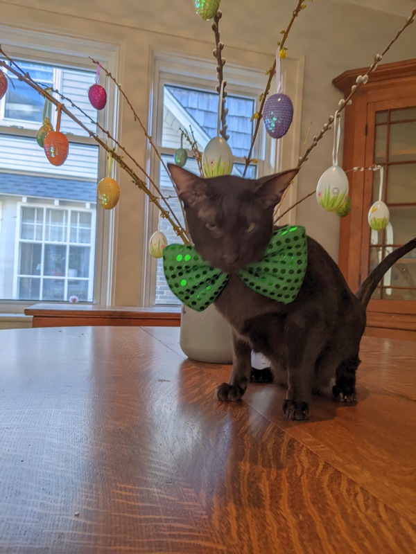 AMARULA: Are you seriously making me wear an Easter egg collar? That’s it, I’m contacting my lawyer! This is a clear case of cruel and unusual punishment!