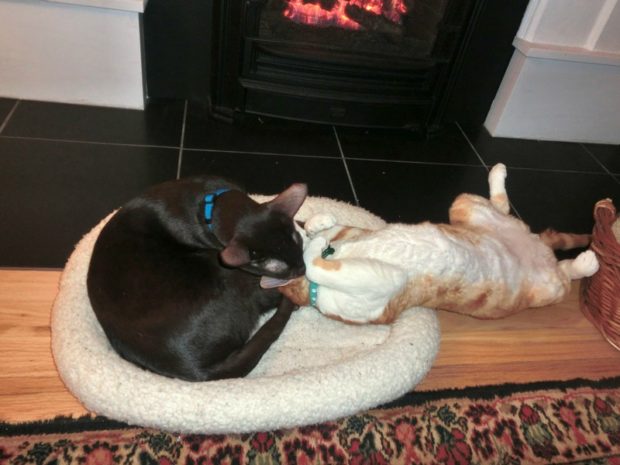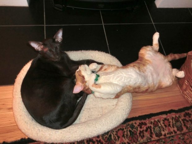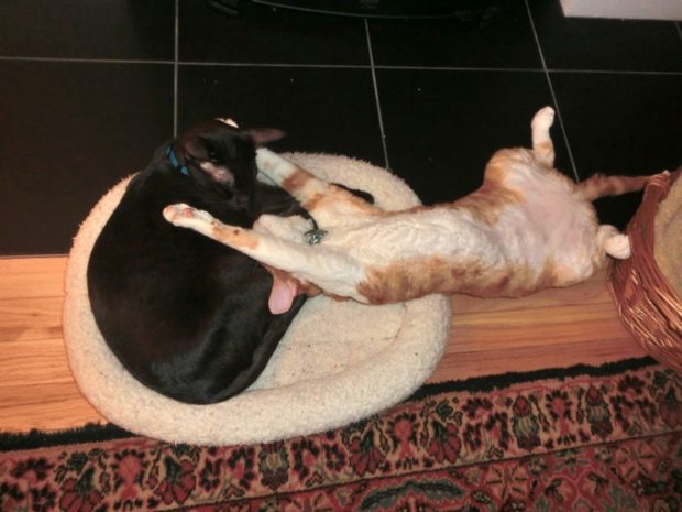You two are so sweet! Zulu, you are very thorough about giving Frodo bath 🙂 And Frodo, you are super adorable all stretched out!