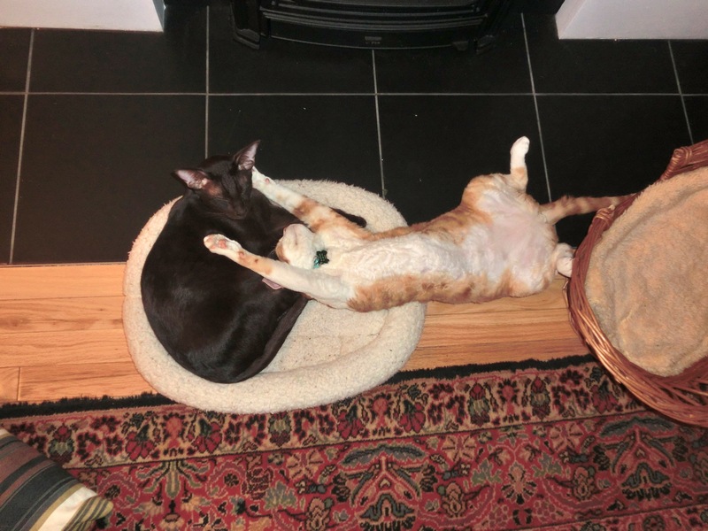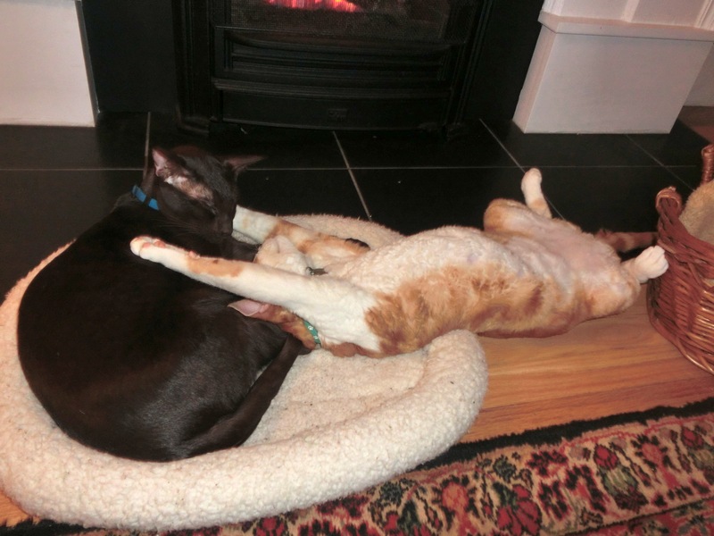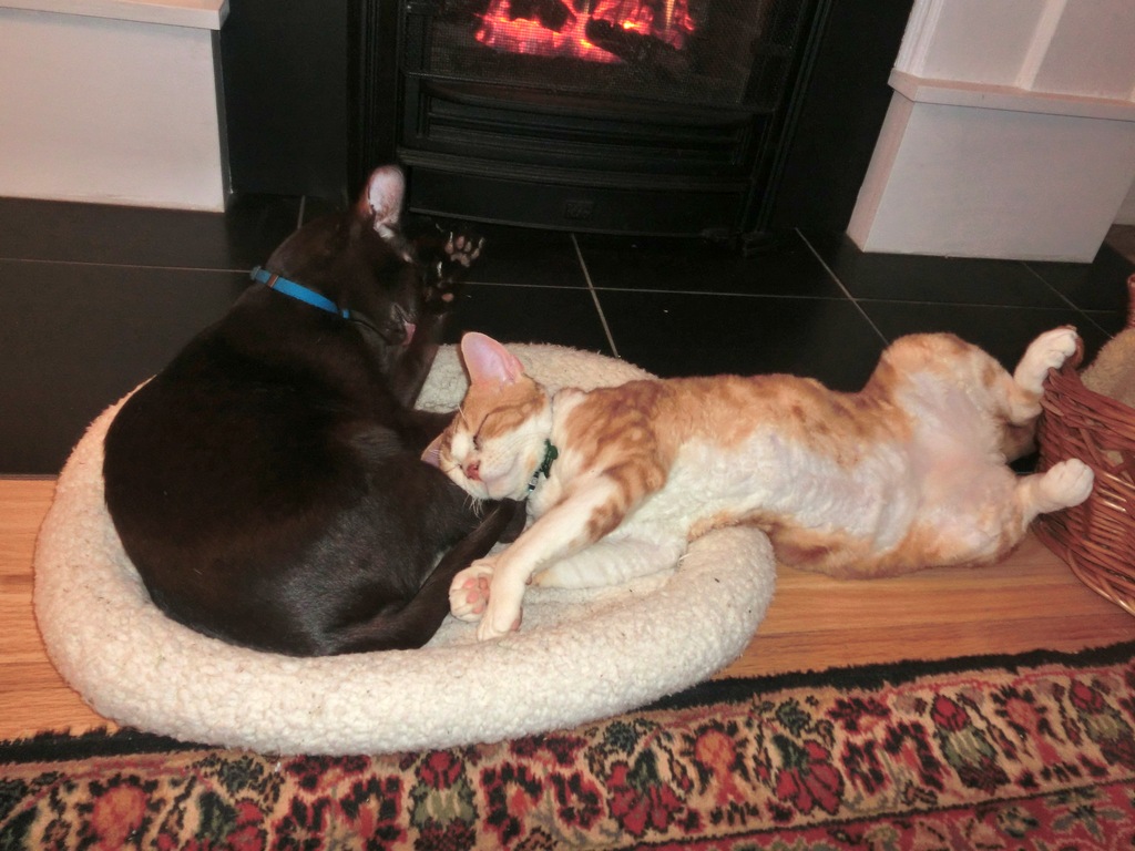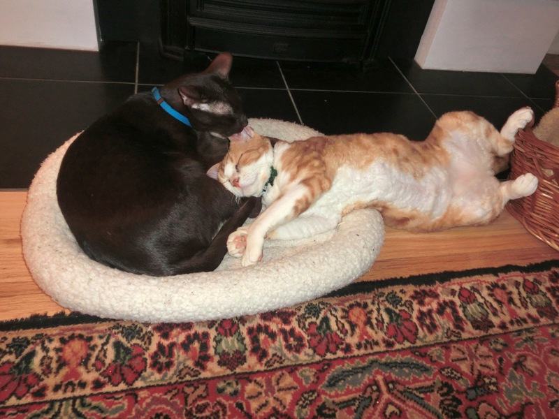 You two are so sweet! Zulu, you are very thorough about giving Frodo bath 🙂 And Frodo, you are super adorable all stretched out!