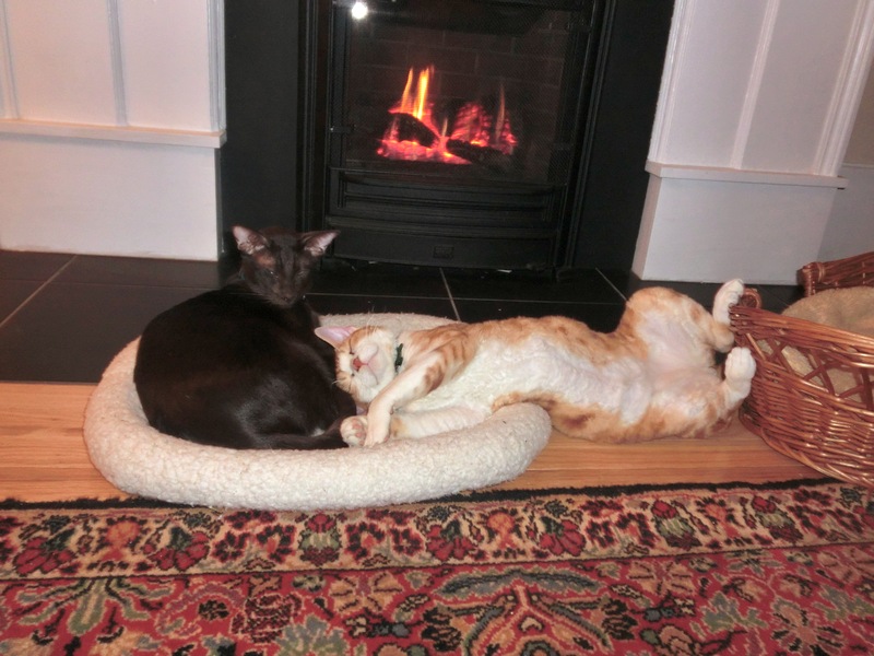 ZULU: With all this rainy weather the nights are still cold here so it’s nice that my little bro Frodo and I get to enjoy a few more nights in front of the fire. As you can see, Frodo loves to stretch out!