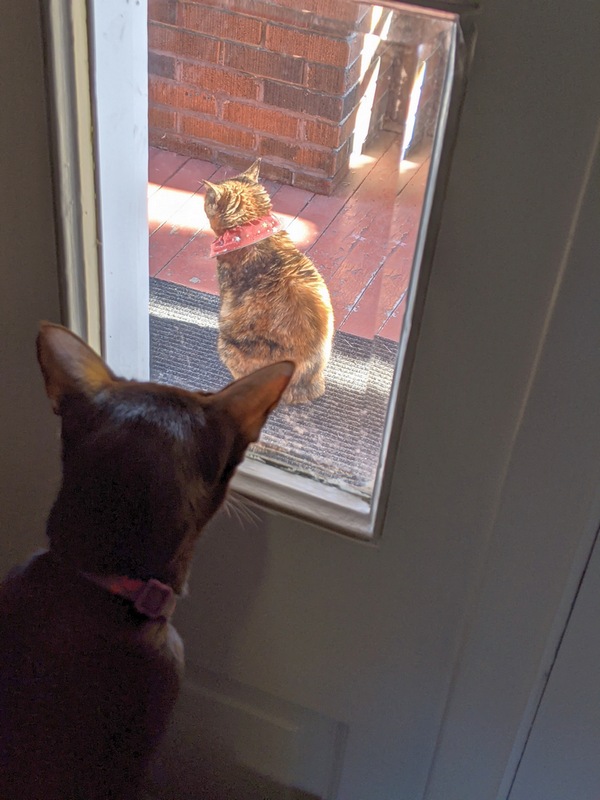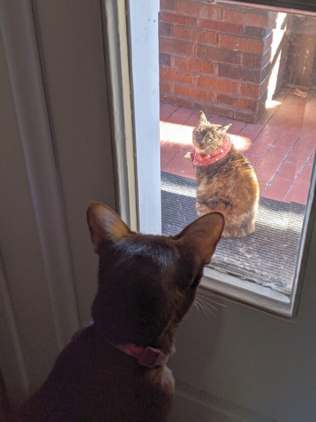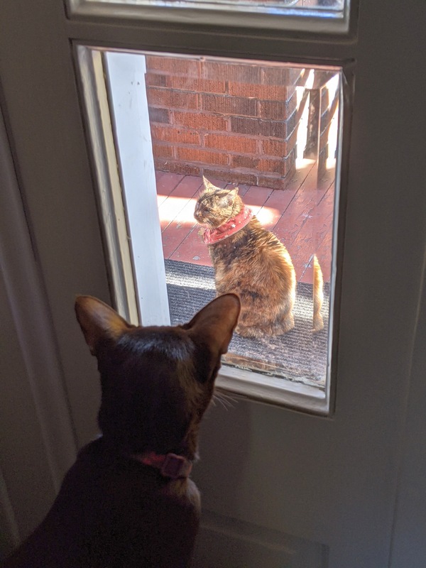 AMARULA: I know the human is home. This is not funny. Tell her to let me in