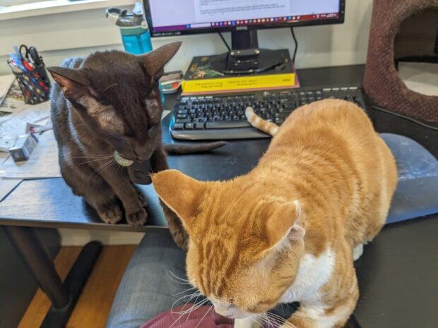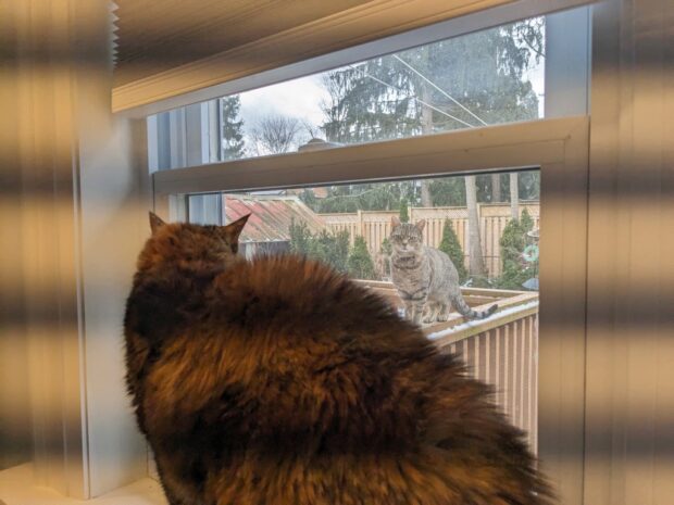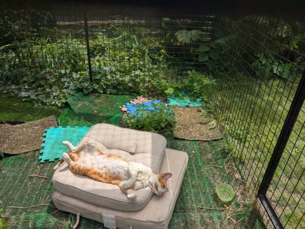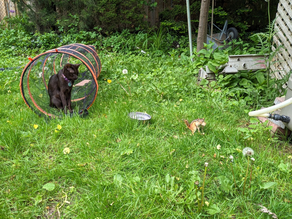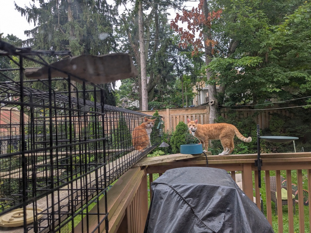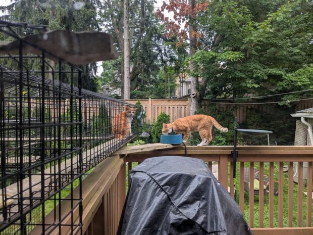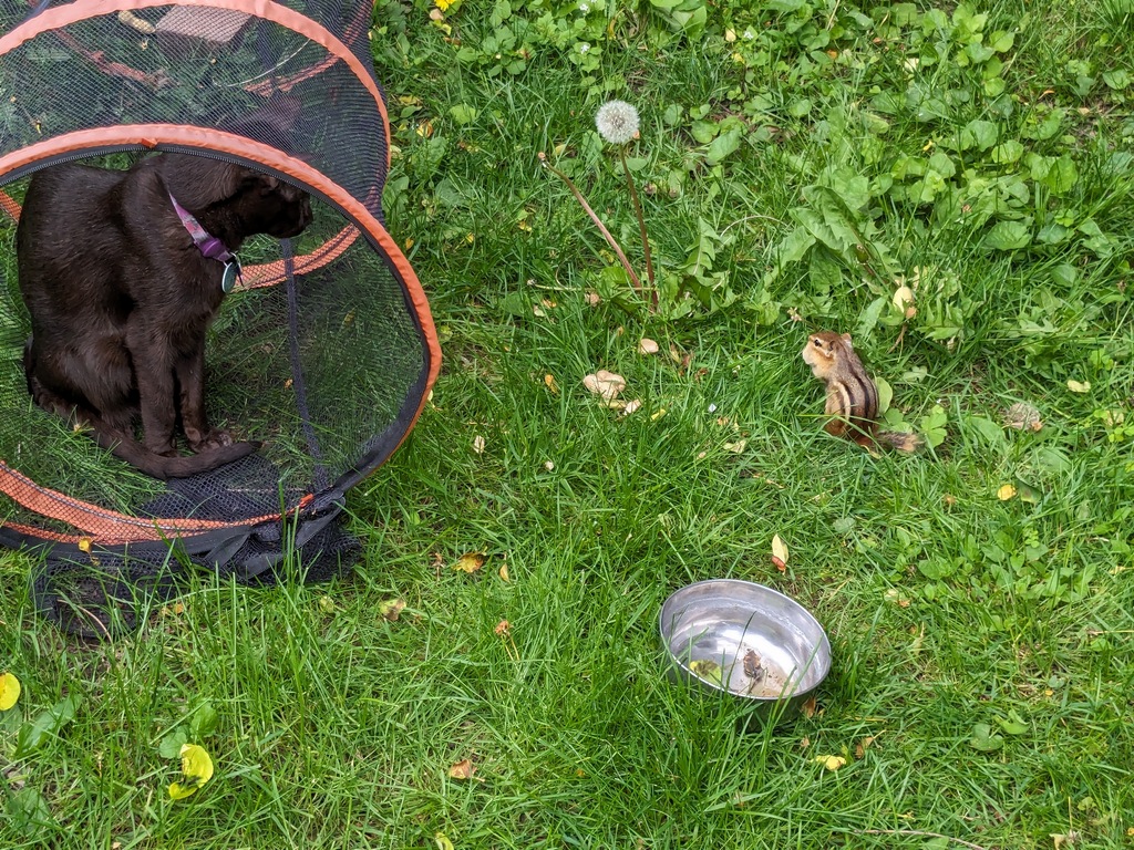 Worse yet, due to a heart condition that we discovered at the vet at the beginning of the month (a third-degree atrioventricular block of the heart)–October has been a crazy month — he was never supposed to go under anaesthesia again as the likely prognosis was that he would die as his heart would stop. My sister (his talented vet) said that he needed a feeding tube but at first she did not want to attempt it for fear he would not survive the operation. But as things got worse she decided to risk it (and another vet at her clinic offered to assist which was also very kind as no vet wants to operate on a patient that could pass during surgery). So, anyway, long story short. They did the surgery on Friday and he not only survived but is doing very well. His stomach seems to be better. The only issue is that he still will only eat very little on his own but my sister says to give him time and at least, in the meantime, I can make sure he is eating enough via the feeding tube. See for yourself how he is doing!