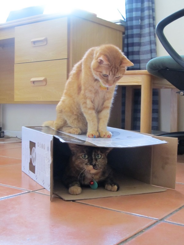 All this time, I had thought I was entertaining our neighbour’s cat so I had been letting it in and playing with it etc., assuming I would not really have any responsibility for the thing cause it always had a “real” home to go to. Well, it turns out I was wrong. Terribly wrong. The neighbours have confirmed that, though the cat visiting us is ALMOST identical to their cat, it is in fact not theirs. So it looks like I have “adopted” a stray despite myself. The stray clearly wants to stay so I realized it was time for a family discussion to decide once and for all if we should just accept that this interloper, this neighbour-cat-in-disguise, is ours.
