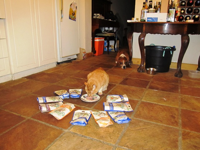 Me: Well, why don’t I just give you a tummy rub and if you wag your tail during it, I will take that to mean you want the cat to come live with us.