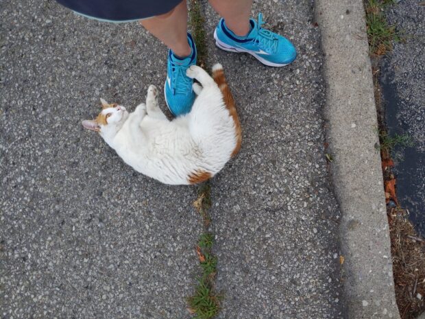 Another friendly orange and white kitty! Also an early riser – only see her/him if run before 7AM!
