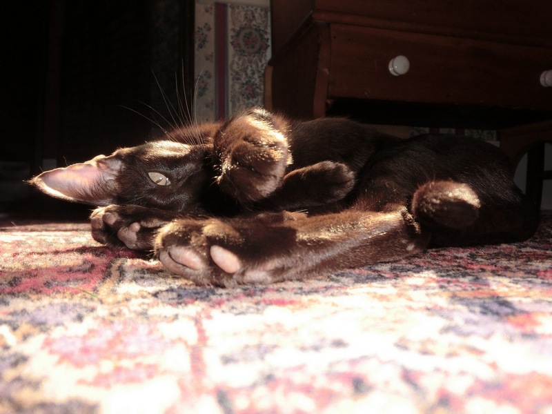 I love how a black cat’s fur seems to come alive in the sunshine. Look at all of those added colors and highlights! Makes my heart melt.