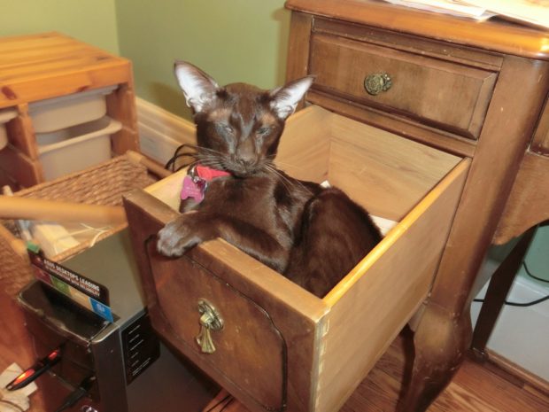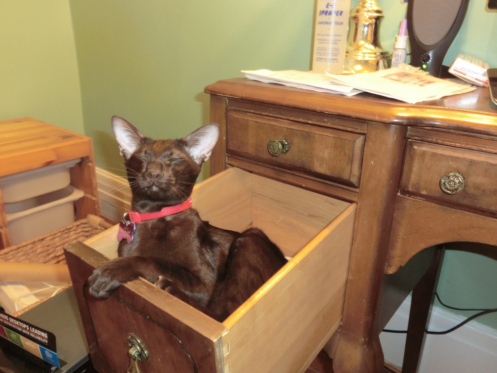 Whoa! Zulu! That’s got to be the BEST SPOT EVER! We’re going to start insisting our Mom give us a drawer like that, which means, of course, she’ll need to clean out sixteen years of collected business cards, old pens, and half a mountain of post-it-notes that don’t even stick anymore! Never too early for spring cleaning, we say. Just keep that vacuum cleaner elsewhere!