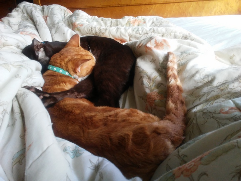 ZULU: Mondays can be tough even for us felines! So we do our best to look extra cute so Mom doesn’t have the heart to wake us and we all can sleep in a little longer!
