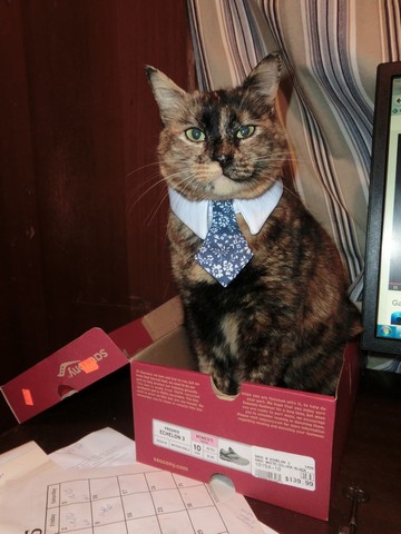 I do declare that tie wearing must run in the family, as this is another wonderful selfie. In fact the addition of the box adds another dimension completely. have you thought about a hat of some description, a flat cap maybe? purrs ERin