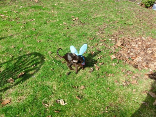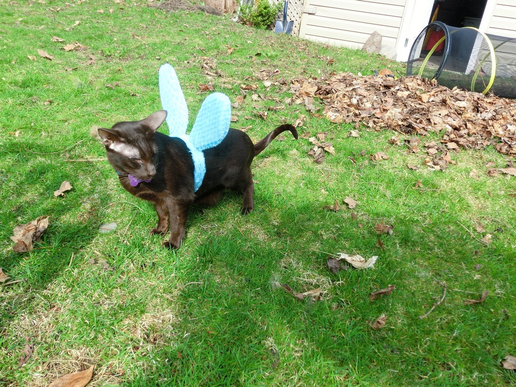 ZULU: Yippee! Look how great I look! Naturally they were too large for my svelte, swan-like neck so Mom put them on me like wings!