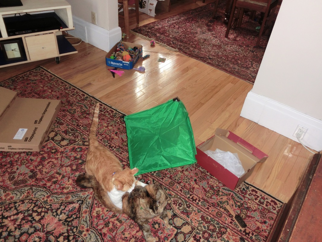 AMARULA: Due to his youth and inexperience (i.e. he has yet to experience my claws of death because of my lady-like restraint) Frodo has tried to hug me on several occasions. I can usually tell when he is getting this death-wish idea into his head because his eyes glaze over (although frankly, glazed-over is pretty much Frodo’s normal state of being). In fact, he appears to have such a look at this very moment….