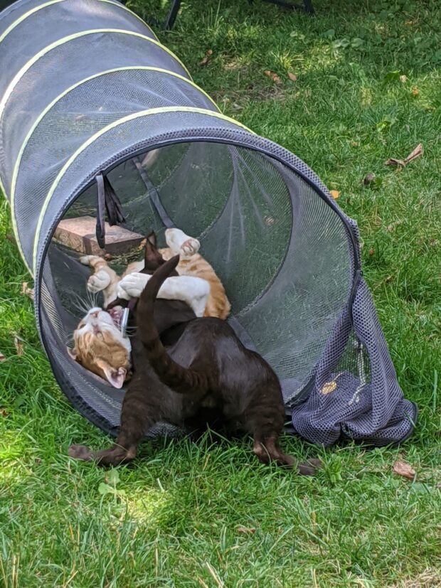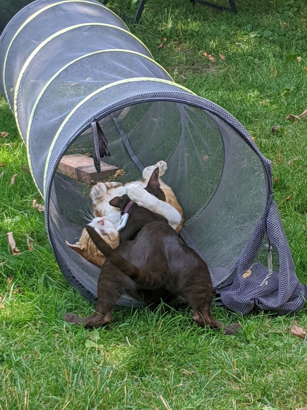Though Frodo and Zulu love each other and generally enjoy hanging out, Zulu is VERY possessive about HIS tunnel and doesn’t like to share…