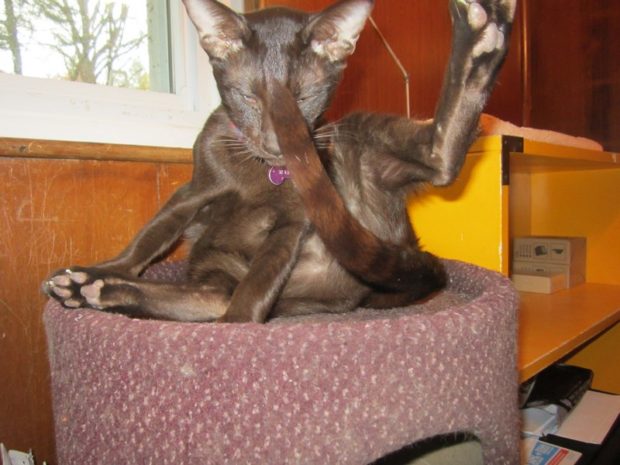 Moms have NO concept of privacy…. For us! And that tail is purrrfectly placed.