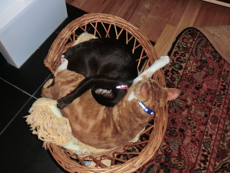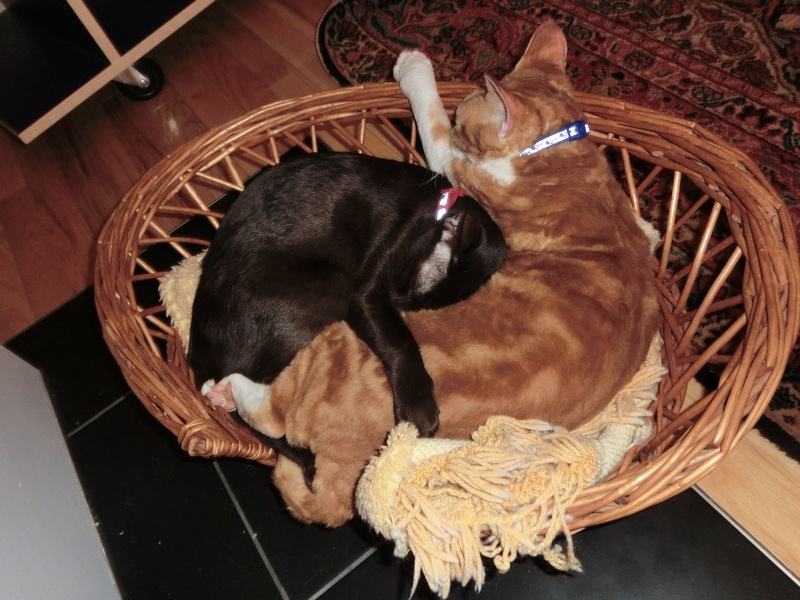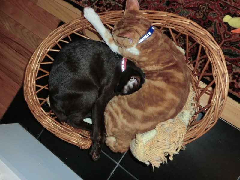 Frodo and Zulu – wonderful huggy mancatly bonding. And peace and quiet too – we like it !