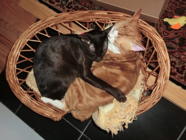 Awww! These two are so cute! I love seeing kitties cuddle together. It looks like that basket has been claimed for good. 🙂 Reply