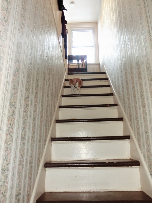 2. Wow, your stairs look a lot like our stairs, except that we have a worn-out carpet runner down the center. Angel and I used to play fetch up and down the stairs when she was young; these days, I dangle a crocheted-catnip ball by a string, and she whaps at it!