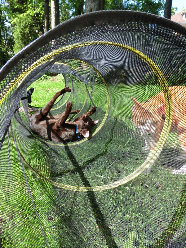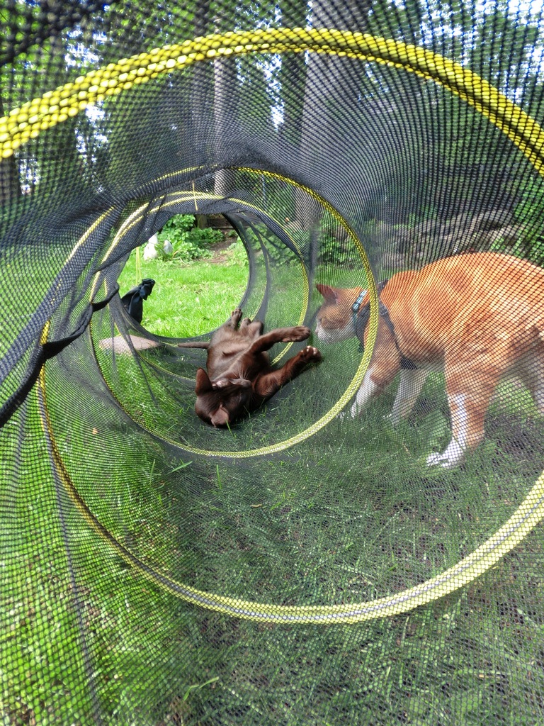 3. What a wonderful playground! So your annoying Mom doesn’t require that you have a good look around when you’re outside? Hanging in the tunnel is enough? Ours got so annoyed that we love to sit on the window sill and look through the window what’s happening inside when we’re outside.