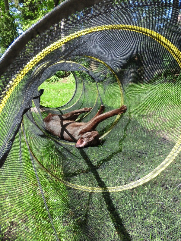 ZULU: I love when mom let’s me have supervised outdoor time. Of all the things I do outside my favorite is hanging out in my tunnel!